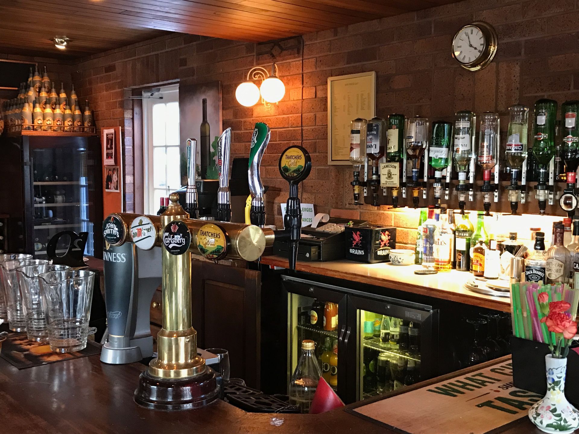 The bar area has 7 tables in but can hold 24 people for a private function.
